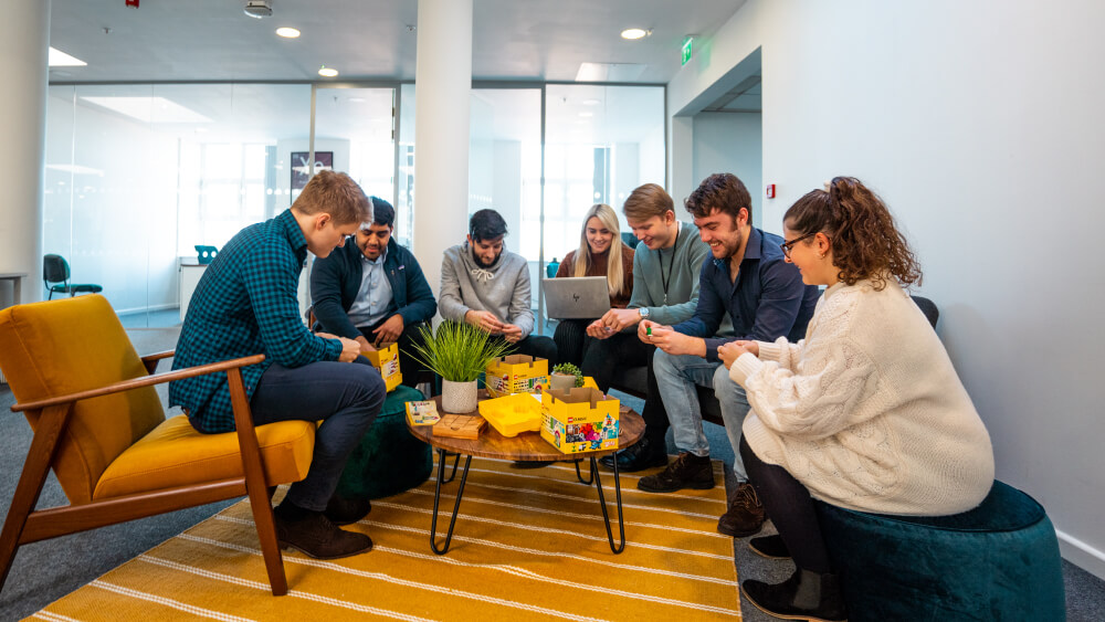 Wherever you are working there are plenty of opportunities to keep connected with your team throughout the day. Our open plan offices provide a bright, energising, and interactive workspace, whilst Microsoft Teams provides everyone with instant messaging, file sharing and video calls for remote working. There are lots of comfy chillout spaces available in the office as well as light and airy meeting rooms for in-person shared ideas sessions. We work collaboratively across all roles, and you’ll be in constant contact with your team via regular daily catch-up calls and meetings.